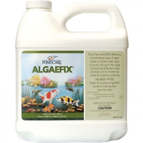 Effectively controls many types of green or green water algae, string or hair algae and blanketweed in ponds that contain live plants. Controls existing algae and helps resolve additional algae blooms. Keeps ornamental ponds and water gardens clean & clear.